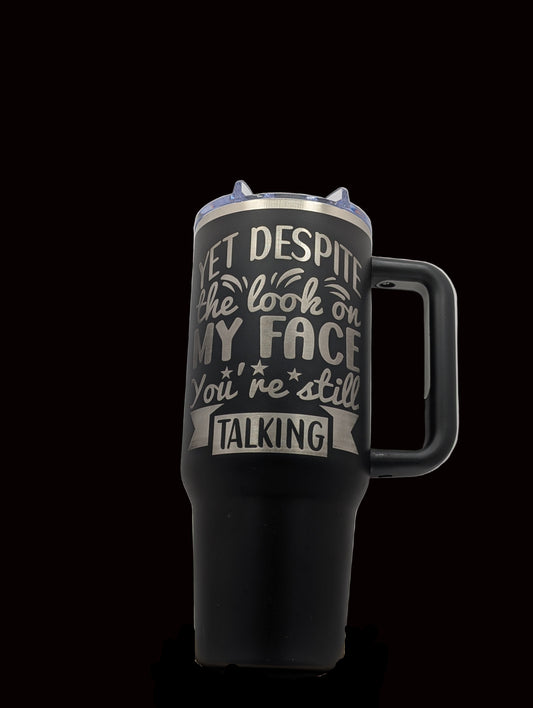 "Yet Despite The Look On My Face You're Still Talking" 40 Oz Mug